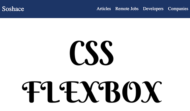 <!DOCTYPE html> <html lang="en"> <head> <style> /* Define the nav-bar styles */ .nav-bar { display: flex; justify-content: space-between; align-items: center; background-color: #1c3565; padding: 0.5rem; } .nav-logo { color: white; text-decoration: none; font-size: 1.5rem; } .nav-links { display: flex; list-style-type: none; } .nav-links li { margin-left: 1rem; } .nav-links a { color: white; text-decoration: none; } </style> </head> <body> <nav class="nav-bar"> <a href="#" class="nav-logo">Soshace</a> <ul class="nav-links"> <li><a href="#">Articles</a></li> <li><a href="#">Remote Jobs</a></li> <li><a href="#">Developers</a></li> <li><a href="#">Companies</a></li> </ul> </nav> </body> </html>
