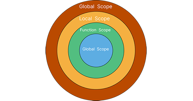 - Local Scope: The accessibility of variables, functions, and objects defined within a function or code block is referred to as local scoping. Locally declared variables are only obtainable within the function or block where they are outlined, so access from outside the function or block is not possible. Local scoping can improve code readability and ease of maintenance while reducing labelling conflicts by confining data and logic within specific functions or code blocks. Local scoping in JavaScript is divided into two types: lexical scoping and block scoping.